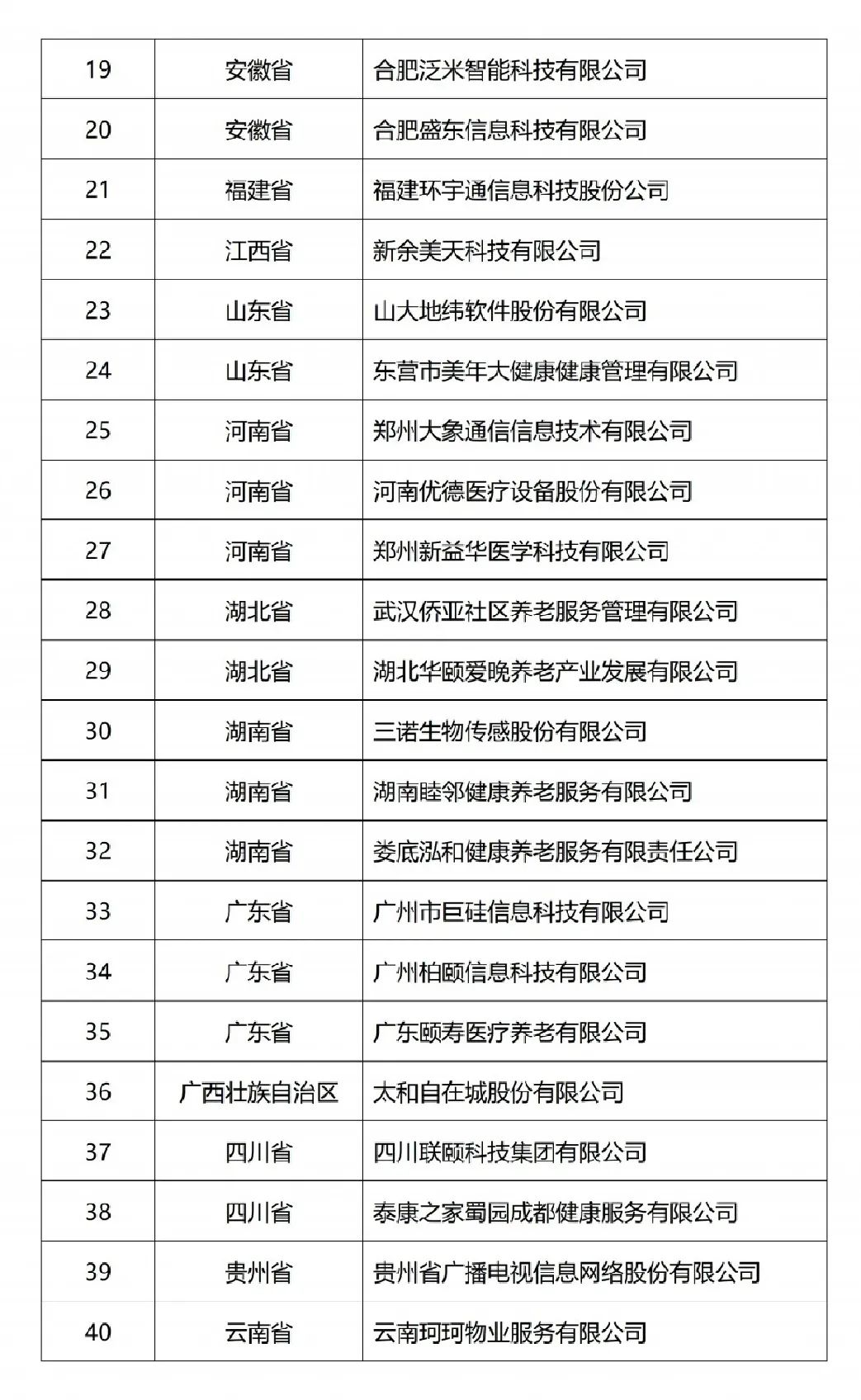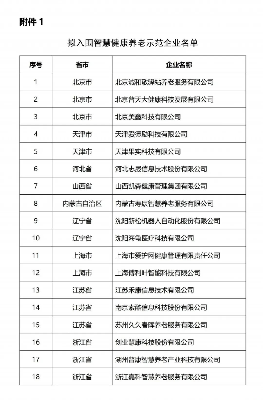 擬入圍智慧健康養(yǎng)老示范企業(yè)名單(滾動(dòng)查看)