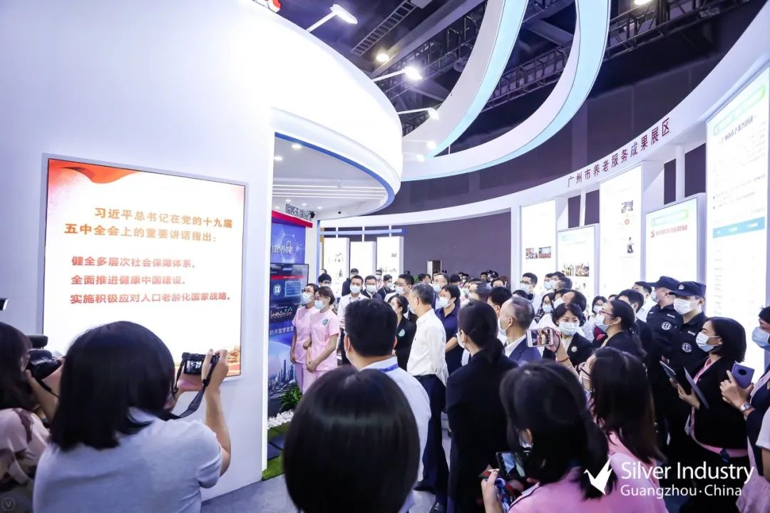 ▲第七屆SIC老博會(huì)現(xiàn)場,廣州市市委書記張碩輔一行在養(yǎng)老服務(wù)成果展示區(qū)參觀調(diào)研