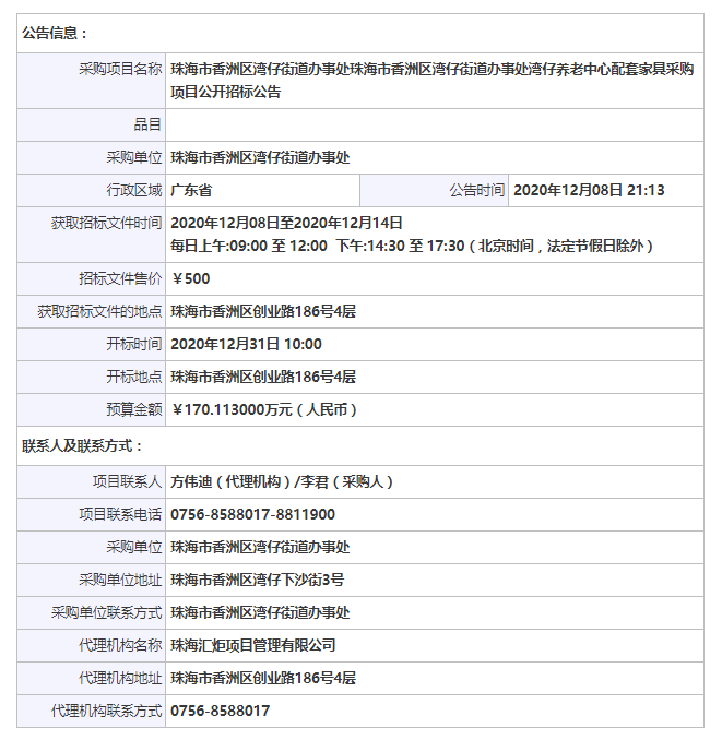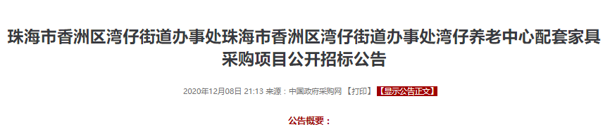 項(xiàng)目名稱:珠海市香洲區(qū)灣仔街道辦事處灣仔養(yǎng)老中心配套家具采購項(xiàng)目公開招標(biāo)公告