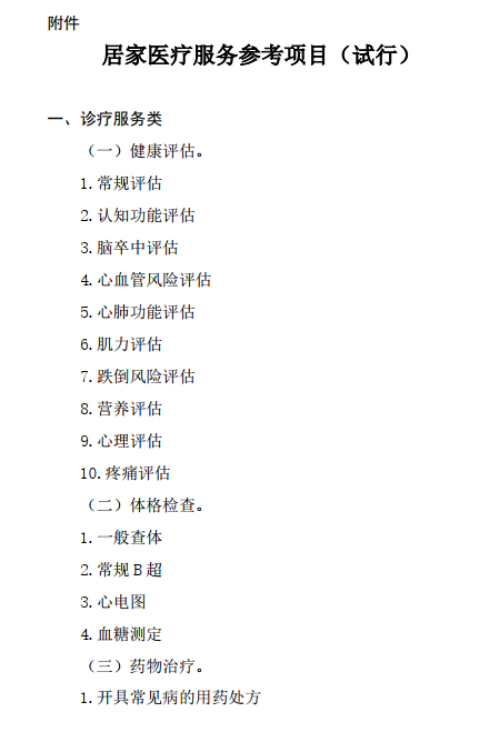 《通知》提出,居家醫(yī)療服務(wù)主要包括適宜居家提供的診療服務(wù)、醫(yī)療護(hù)理、康復(fù)治療、藥學(xué)服務(wù)、安寧療護(hù)、中醫(yī)服務(wù)等。