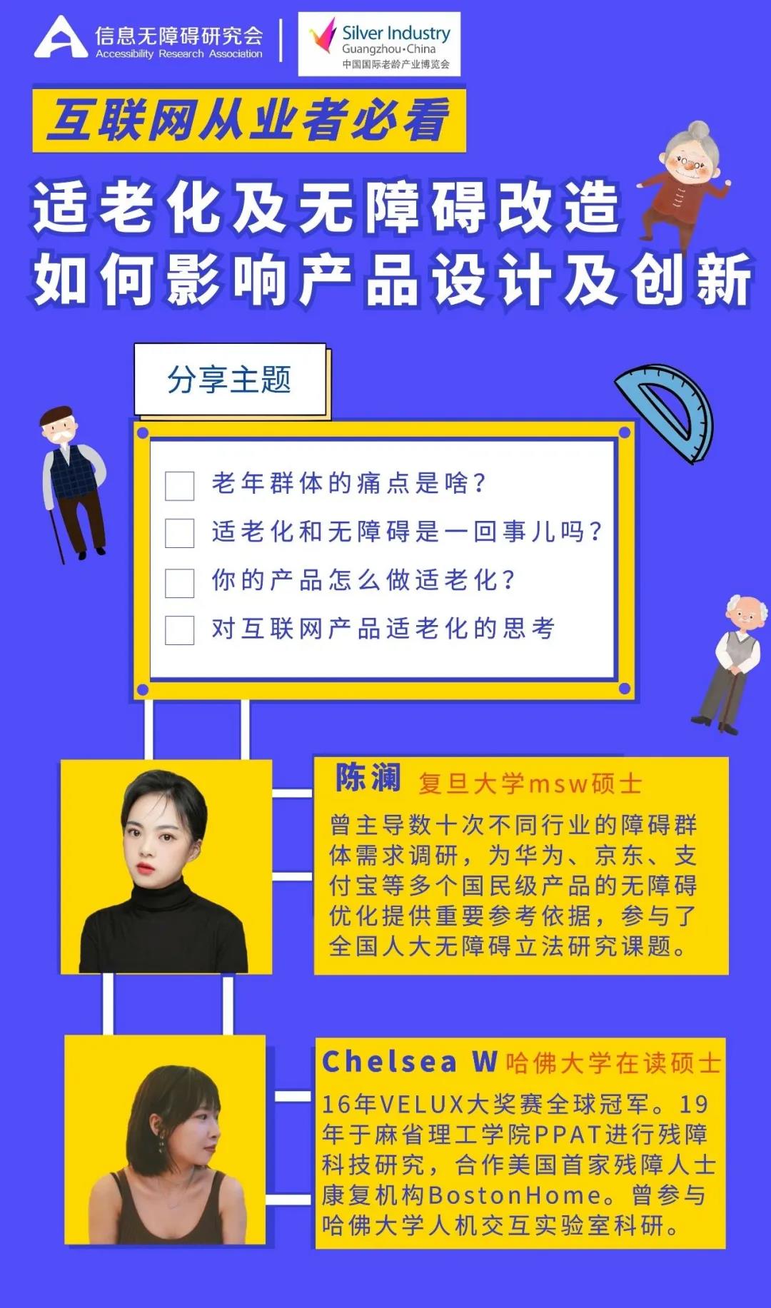 1月26日(周二)20:00,由深圳市信息無障礙研究會主辦,中國國際老齡產(chǎn)業(yè)博覽會合作舉辦的信息無障礙研究會公開課,將和大家一起聊聊互聯(lián)網(wǎng)產(chǎn)品如何做好適老化改造!