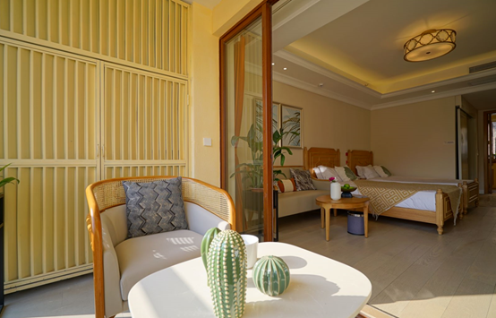●單間戶型大床房由兩張床褥合并而成,夜起互不打擾;