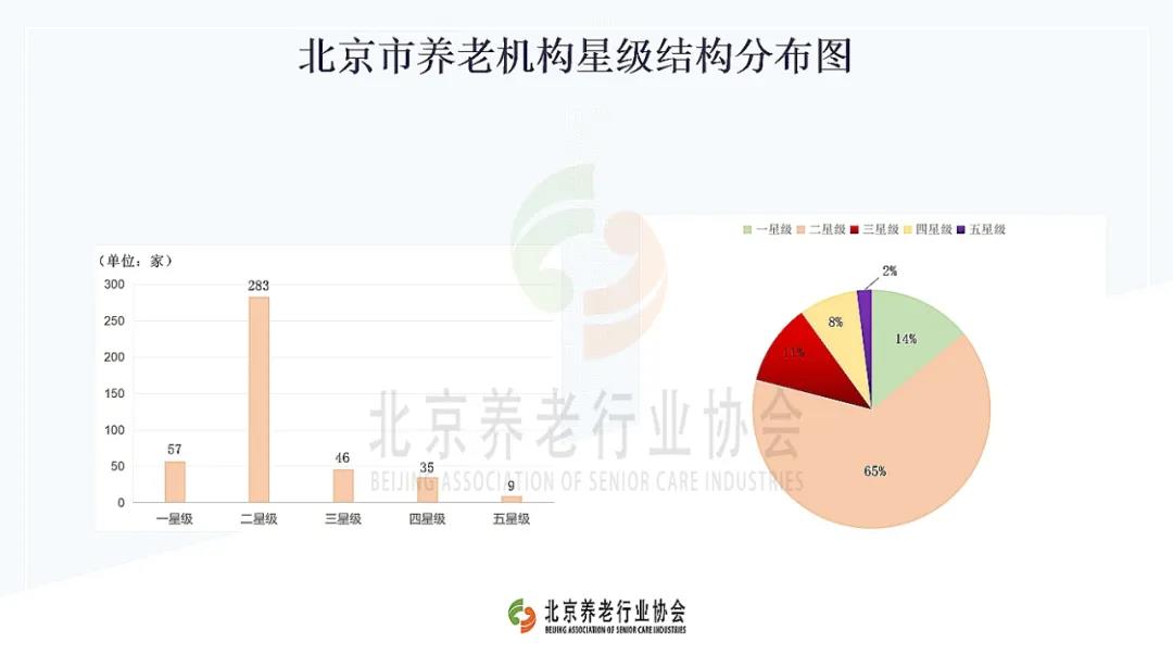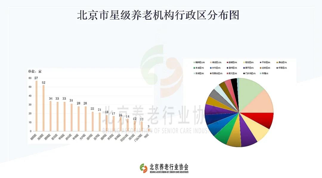 朝陽區(qū)是北京市開設養(yǎng)老機構最多的行政區(qū),其中具備星級資格的57家,包括:五星級3家,四星級6家,三星級12家,二星級30家,一星級6家。其次是海淀區(qū),共52家。