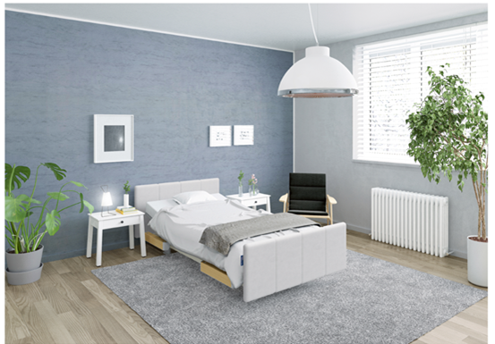 可拆卸的側(cè)面飾板能夠隨意翻轉(zhuǎn)和替換,只需安裝一個(gè)獨(dú)立的轉(zhuǎn)動(dòng)護(hù)欄或側(cè)面扶手,INTIME 1000就變成了護(hù)理床。