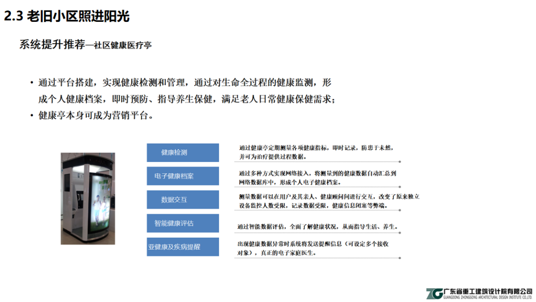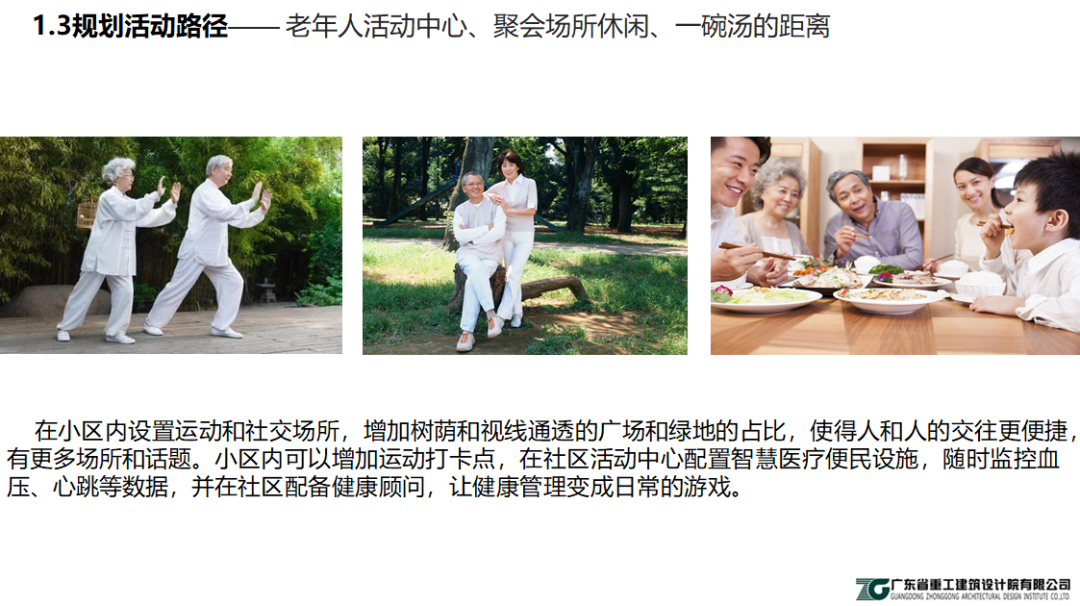 要通過技術(shù)創(chuàng)新和產(chǎn)業(yè)結(jié)構(gòu)的調(diào)整,形成居家養(yǎng)老的系列標準與服務(wù)體制,從而適應(yīng)老齡化社會需求。如社區(qū)在規(guī)劃階段,要主動考慮社區(qū)服務(wù)站、老年之家及門診所、運動和社交場所、樹蔭綠地占比等。