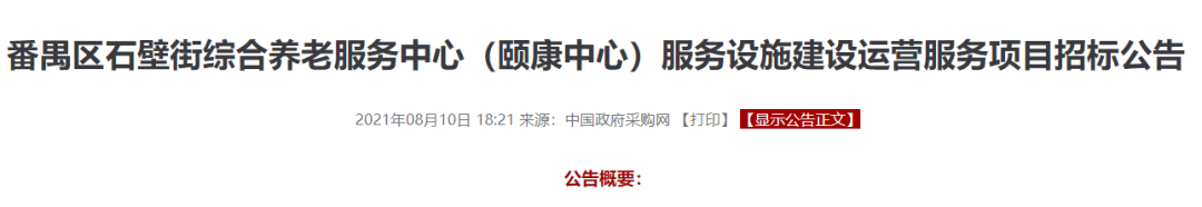 項(xiàng)目名稱:番禺區(qū)石壁街綜合養(yǎng)老服務(wù)中心(頤康中心)服務(wù)設(shè)施建設(shè)運(yùn)營(yíng)服務(wù)項(xiàng)目招標(biāo)公告