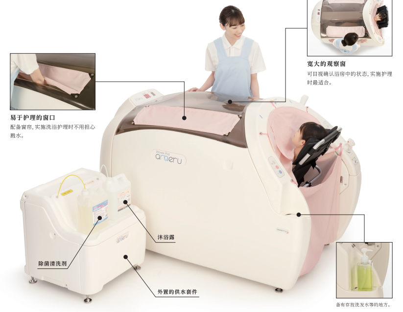 華鑫科技引進(jìn)日本酒井醫(yī)療公司最新研發(fā)的全自動(dòng)納米氣泡洗澡機(jī),全面解決失能老人的洗澡問(wèn)題。