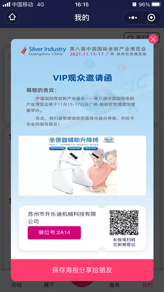 登錄【SIC養(yǎng)老在線】小程序,點擊“VIP邀請函”生成專屬客戶邀請頁面;