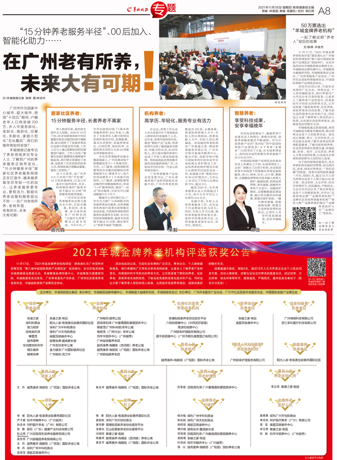 羊城晚報(bào)記者專訪了養(yǎng)老領(lǐng)域多位專業(yè)人士,了解到廣州的養(yǎng)老服務(wù)正悄然變化,“15分鐘服務(wù)半徑”居家社區(qū)養(yǎng)老服務(wù)網(wǎng)絡(luò)正在打造中,越來(lái)越多高學(xué)歷年輕一代的加入,讓養(yǎng)老服務(wù)更專業(yè)、更有活力,智能化養(yǎng)老設(shè)備和服務(wù)層出不窮……在廣州老有所養(yǎng)、老有所醫(yī)、老有所樂,未來(lái)大有可期!