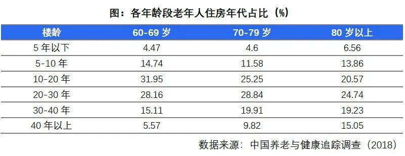 據(jù)估算,中國城市存量住房建成年份在2000年前后的比例約為3:7。報(bào)告指出,2000年以前建成的小區(qū)距今已有20年,在住區(qū)設(shè)計(jì)等方面相對(duì)“先天不足”,除電梯及無障礙通道問題,設(shè)施線路等老化問題也可能導(dǎo)致安全隱患。老舊小區(qū)適老化改造對(duì)提升老年人居住幸福感具有重要意義。