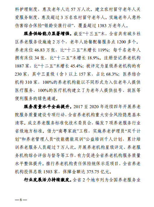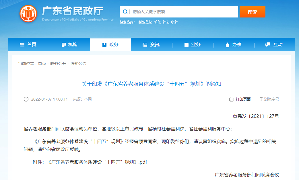 日前,廣東省民政廳網(wǎng)站發(fā)布《廣東省養(yǎng)老服務體系建設“十四五”規(guī)劃》全文。