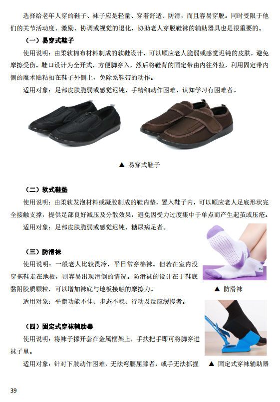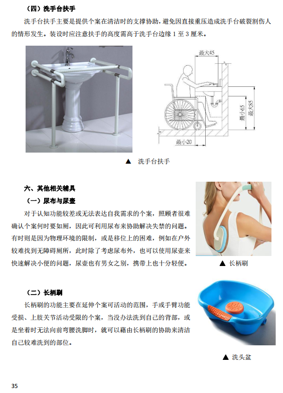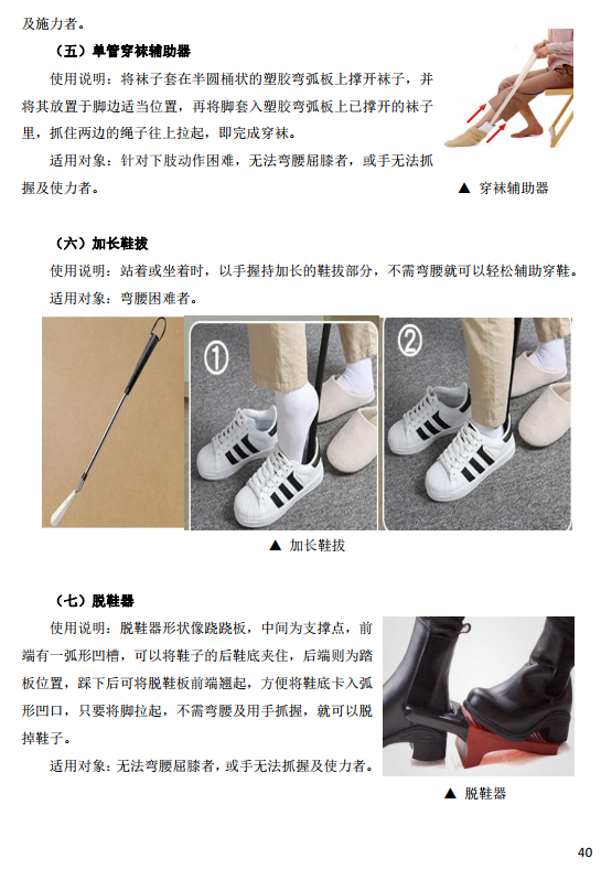 《手冊(cè)》圖文并茂地詳細(xì)介紹了以下輔助器具類型、適用人群及用法: