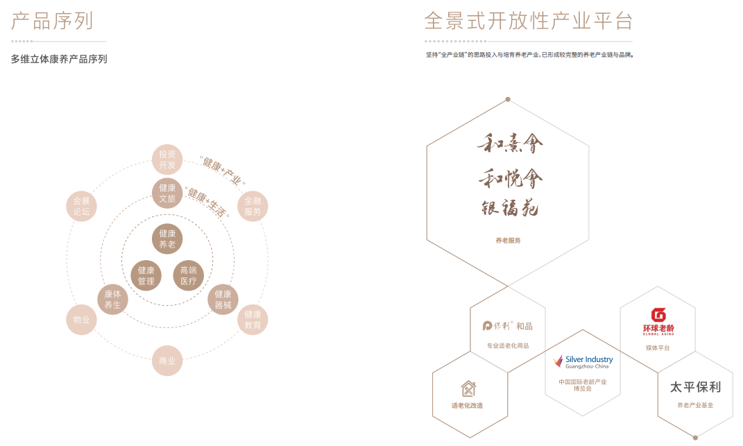 以養(yǎng)老服務(wù)為出發(fā),保利的“養(yǎng)老版圖”上已經(jīng)延伸出專(zhuān)業(yè)適老化用品及適老化改造供應(yīng)商“保利和品”、養(yǎng)老博覽會(huì) “SIC老博會(huì)”、媒體平臺(tái)“環(huán)球老齡”、養(yǎng)老產(chǎn)業(yè)基金“太平保利” 、養(yǎng)老人才育成計(jì)劃等多元康養(yǎng)產(chǎn)業(yè)鏈。