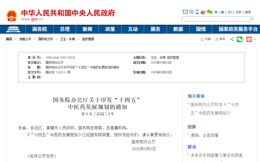 “十四五”中醫(yī)藥發(fā)展規(guī)劃