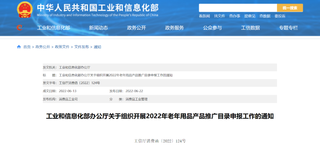 為深入貫徹《中共中央 國務(wù)院關(guān)于加強(qiáng)新時代老齡工作的意見》《國務(wù)院關(guān)于印發(fā)“十四五”國家老齡事業(yè)發(fā)展和養(yǎng)老服務(wù)體系規(guī)劃的通知》,落實(shí)《關(guān)于促進(jìn)老年用品產(chǎn)業(yè)發(fā)展的指導(dǎo)意見》,促進(jìn)優(yōu)質(zhì)老年用品產(chǎn)品推廣應(yīng)用,現(xiàn)組織開展2022年老年用品產(chǎn)品推廣目錄申報工作。有關(guān)事項通知如下: