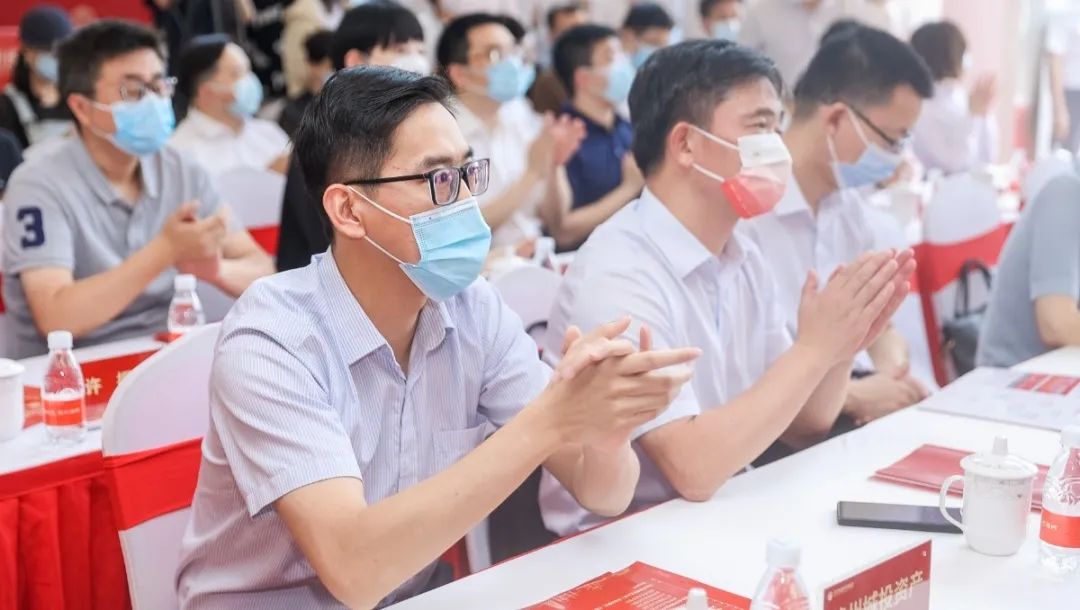 △活動現場,蘇州市政府副秘書長謝飛為項目揭牌并致辭。