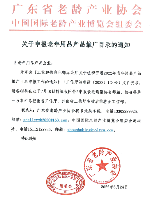 為落實《工業(yè)和信息化部辦公廳關(guān)于組織開展2022年老年用品產(chǎn)品推廣目錄申報工作的通知》(工信廳消費(fèi)函 (2022) 124號)文件要求,請各相關(guān)企業(yè)于