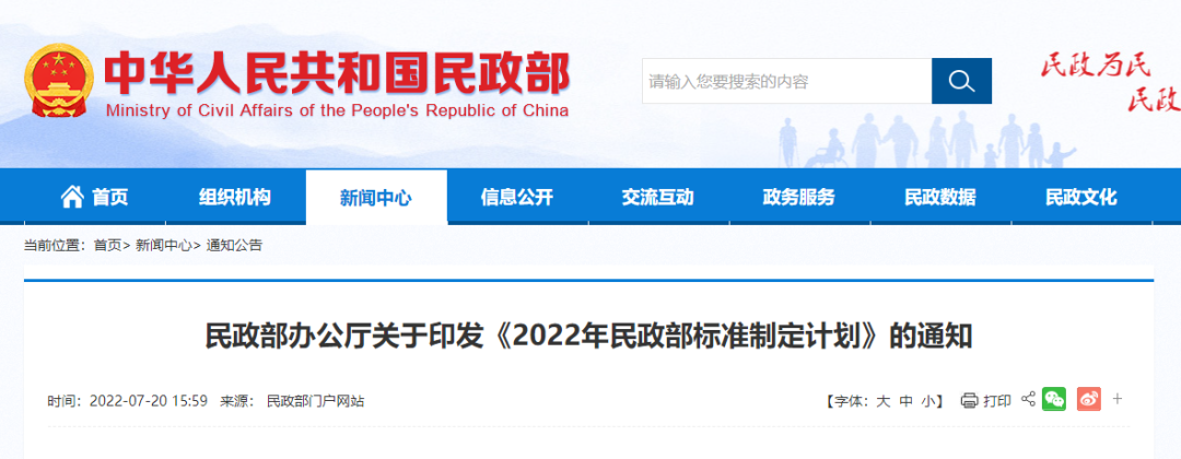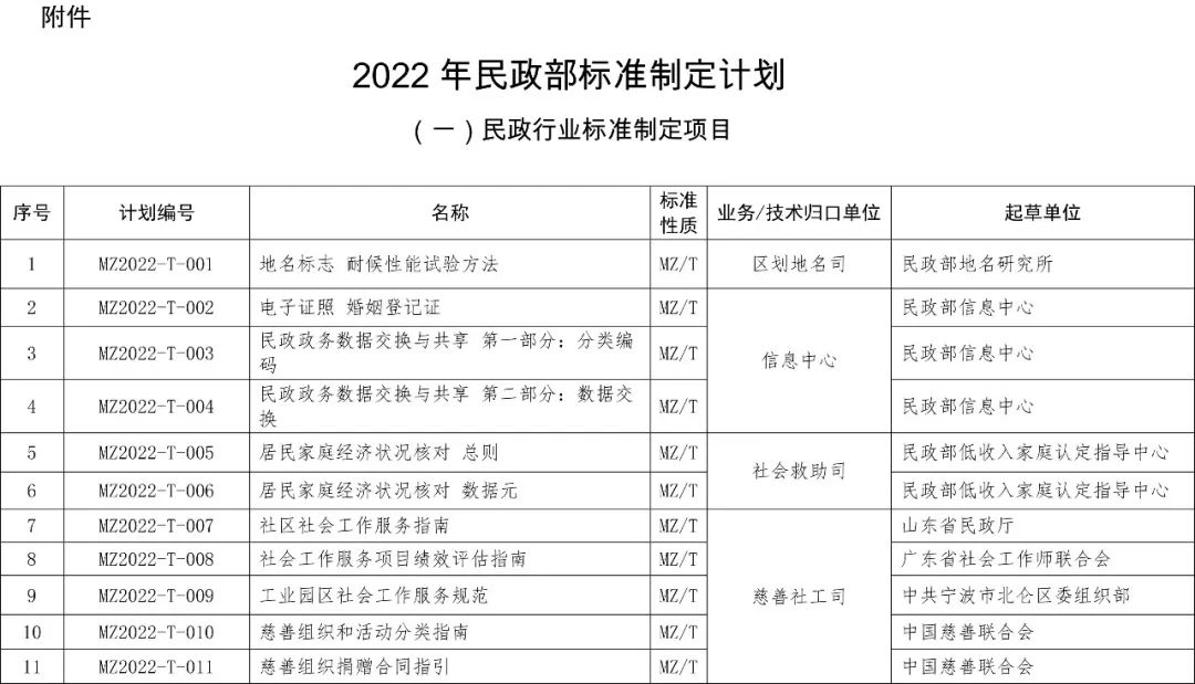 民政部辦公廳關(guān)于印發(fā)《2022年民政部標(biāo)準(zhǔn)制定計(jì)劃》的通知