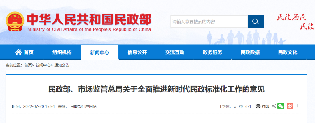 民政部、市場(chǎng)監(jiān)管總局關(guān)于全面推進(jìn)新時(shí)代民政標(biāo)準(zhǔn)化工作的意見(jiàn)