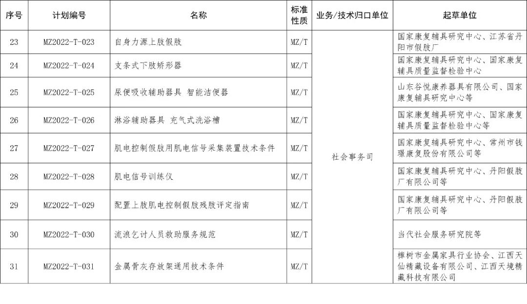 此外,民政部辦公廳也于近日印發(fā)了《2022年民政部標(biāo)準(zhǔn)制定計(jì)劃》,今年計(jì)劃開(kāi)展31項(xiàng)民政行業(yè)標(biāo)準(zhǔn)的編寫(修訂),并向國(guó)家標(biāo)準(zhǔn)委申請(qǐng)25項(xiàng)標(biāo)準(zhǔn)立項(xiàng)。其中包含《養(yǎng)老機(jī)構(gòu)委托服務(wù)規(guī)范》、《智能電動(dòng)輪椅車 要求和試驗(yàn)方法》、《安寧療護(hù)社會(huì)工作服務(wù)指南》、《居家養(yǎng)老助殘服務(wù)規(guī)范》、《養(yǎng)老機(jī)構(gòu)生活照料服務(wù)基本規(guī)范》等。