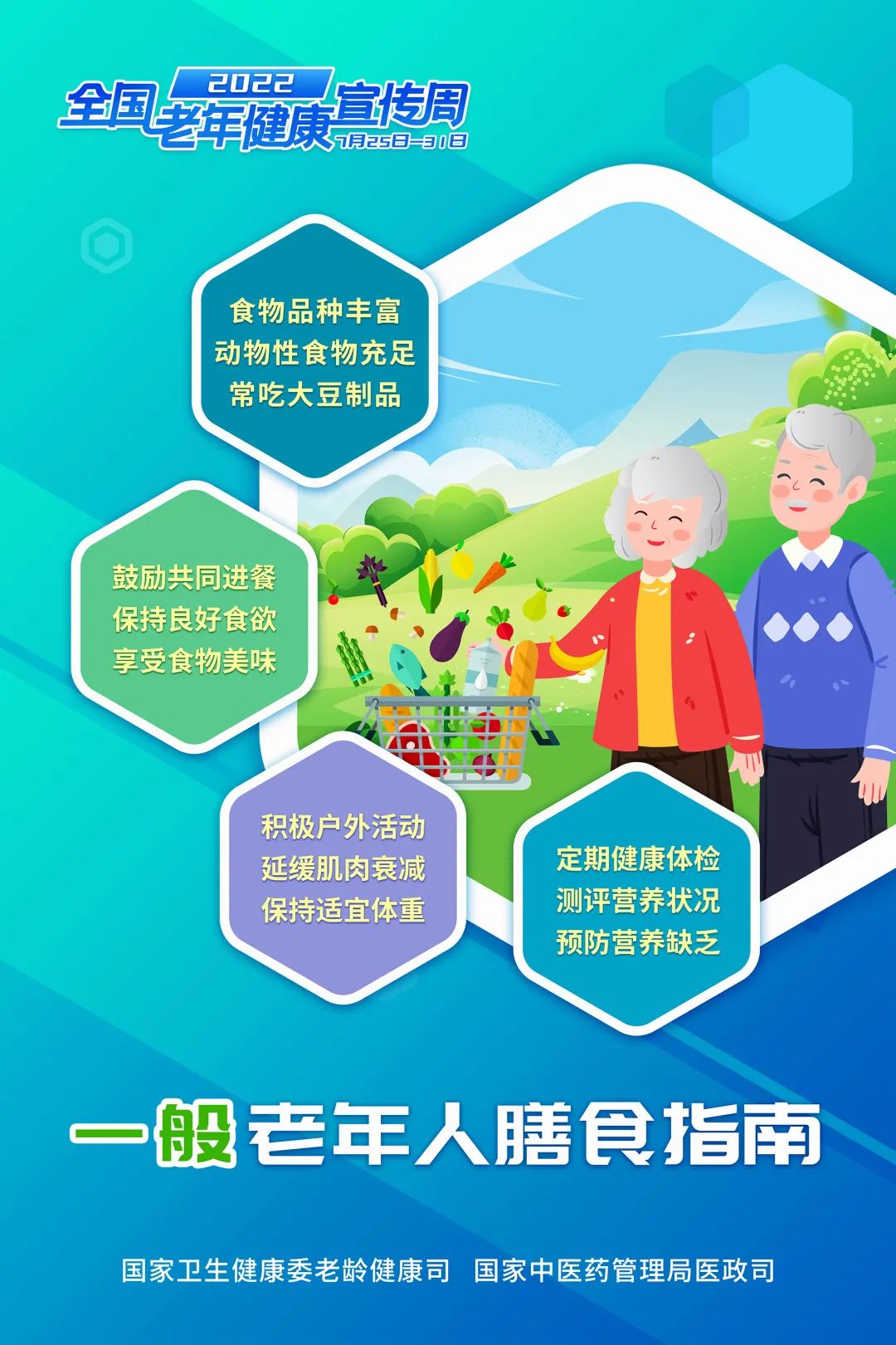 為宣傳普及老年健康政策和科學(xué)知識,切實提高老年人健康水平,國家衛(wèi)生健康委會同國家中醫(yī)藥管理局以“改善老年營養(yǎng),促進老年健康”為主題,于2022年7月25日—31日在全國組織開展2022年全國老年健康宣傳周活動。為做好宣傳工作,國家衛(wèi)生健康委老齡健康司組織制作了2022年全國老年健康宣傳周海報及第三批老年健康教育系列科普視頻。
