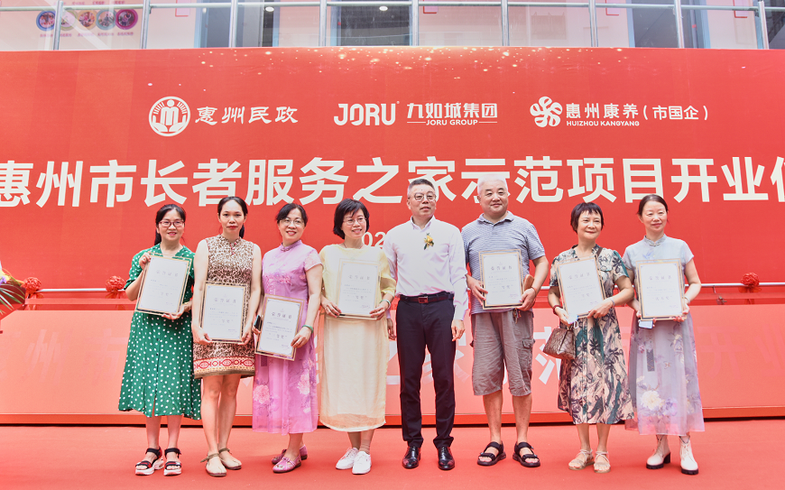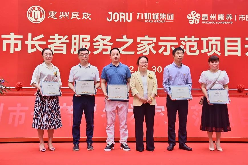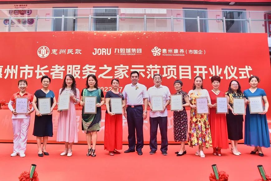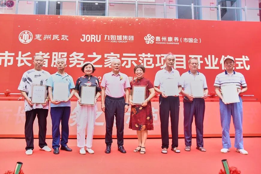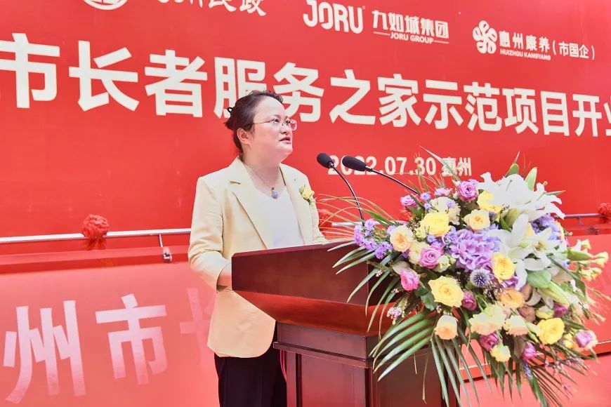 2022年7月30日,惠州市長(zhǎng)者服務(wù)之家示范項(xiàng)目(惠民九如康養(yǎng)中心)開業(yè)儀式隆重舉行?;葜菔忻裾志珠L(zhǎng)吳素青,惠州市民政局副局長(zhǎng)陳利金,市政府辦公室一級(jí)調(diào)研員甘少權(quán),市國(guó)資委副主任譚少群,市產(chǎn)業(yè)投資集團(tuán)董事長(zhǎng)覃向陽,市投資管理集團(tuán)董事長(zhǎng)江麗強(qiáng),市財(cái)政局副局長(zhǎng)楊惠,市衛(wèi)生健康局二級(jí)調(diào)研員楊小敏,市文化廣電旅游體育局副局長(zhǎng)肖麗芳,四級(jí)調(diào)研員王東紅,市老年大學(xué)校長(zhǎng)李秀峰及各區(qū)縣相關(guān)部門領(lǐng)導(dǎo),九如城創(chuàng)始人談義良,九如城集團(tuán)副總裁霍芝林,九如城集團(tuán)珠三角區(qū)域公司總經(jīng)理?xiàng)钇妫湃绯羌瘓F(tuán)珠三角區(qū)域公司副總經(jīng)理黃麗麗出席慶典活動(dòng)。