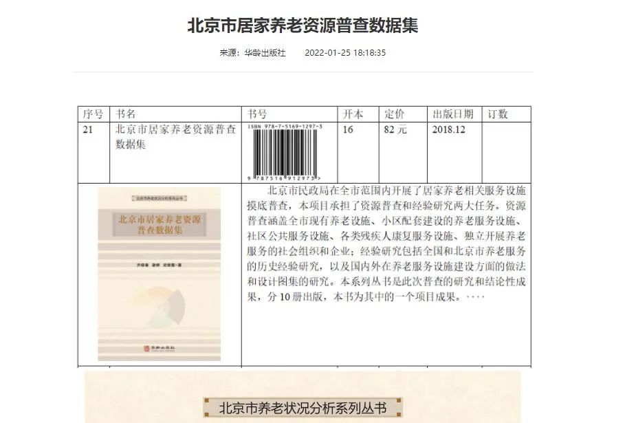 “老齡圖書”板塊,網(wǎng)站推薦了95本書籍,目前只能看到價格、出版年份、內(nèi)容簡介等。