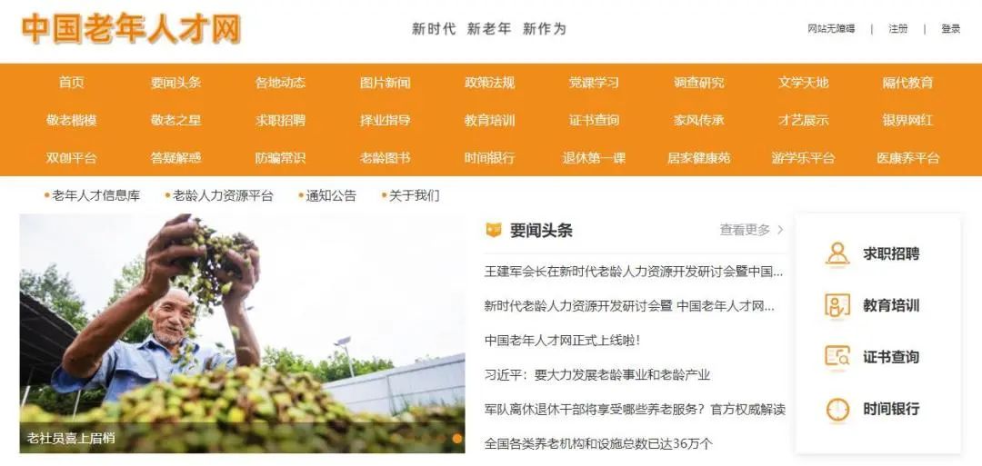 《中共中央國務(wù)院關(guān)于加強新時代老齡工作的意見》提出,把老有所為同老有所養(yǎng)結(jié)合起來;鼓勵各地建立老年人才信息庫,為有勞動意愿的老年人提供職業(yè)介紹、職業(yè)技能培訓(xùn)和創(chuàng)新創(chuàng)業(yè)指導(dǎo)服務(wù)。中國老齡協(xié)會積極貫徹落實黨中央、國務(wù)院決策部署,責(zé)成中國老齡協(xié)會老年人才信息中心具體負責(zé)中國老年人才信息服務(wù)平臺建設(shè)工作。