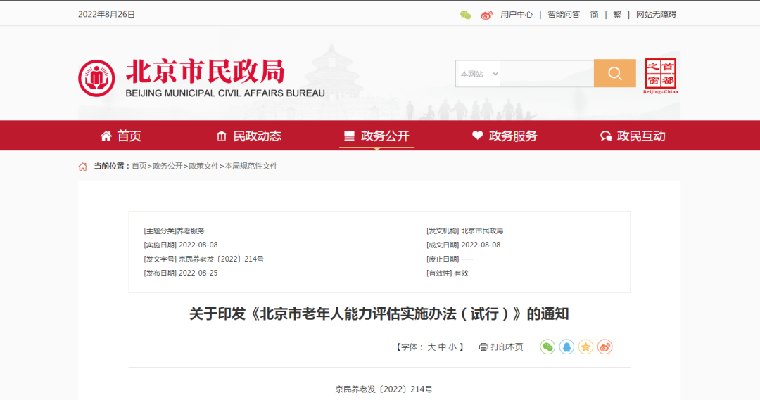 北京市老年人能力評(píng)估實(shí)施辦法(試行)