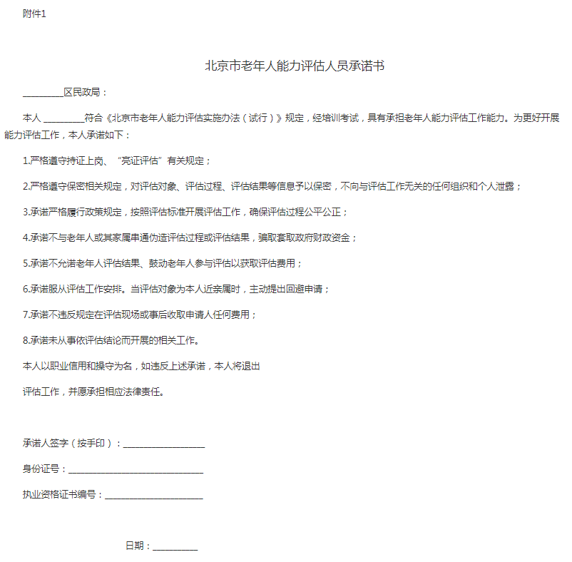 附件:1.北京市老年人能力評(píng)估人員承諾書