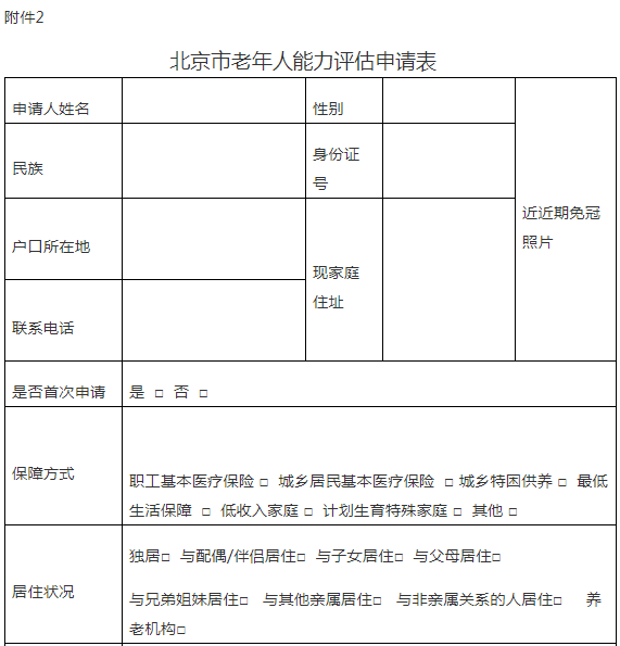 2.北京市老年人能力評(píng)估申請(qǐng)表