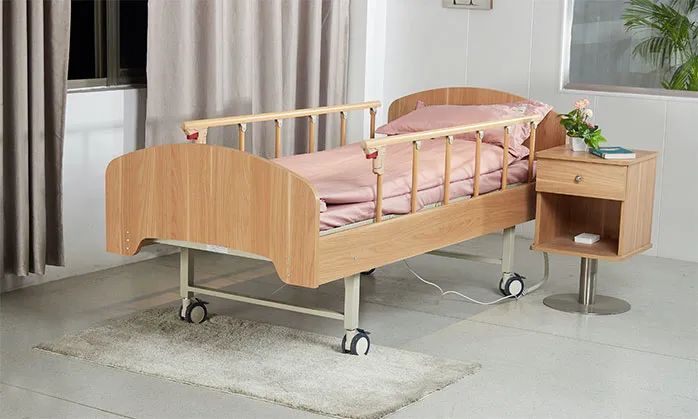 產(chǎn)品采用鋼網(wǎng)結(jié)構(gòu),具有透氣、防潮濕的特點(diǎn);床頭床尾采用實(shí)木或者刨花板,可與房間環(huán)境相匹配;護(hù)理床背部、腿部可折疊,背部起折角度≧70°,腿部起折角度≧30°;可選配腳輪、轉(zhuǎn)彎護(hù)欄、輸液架。