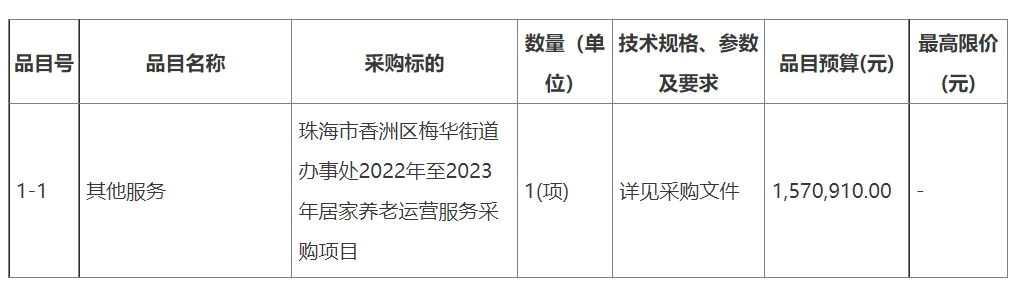 項(xiàng)目名稱:廣東省珠海市香洲區(qū)梅華街道辦事處2022年至2023年居家養(yǎng)老運(yùn)營服務(wù)采購項(xiàng)目