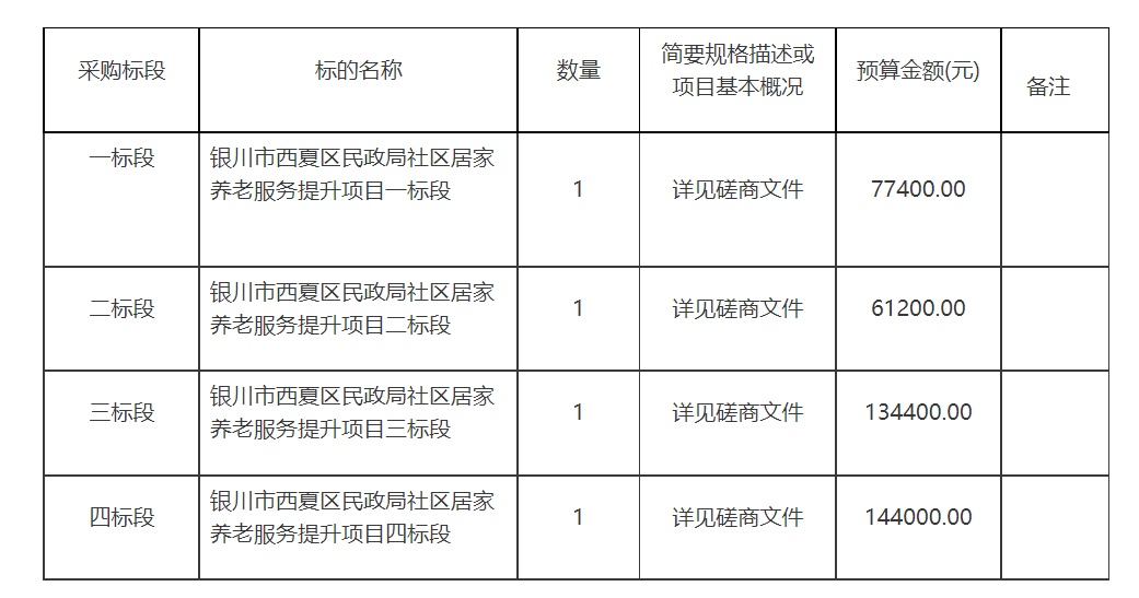 項(xiàng)目名稱:寧夏省銀川市西夏區(qū)民政局社區(qū)居家養(yǎng)老服務(wù)提升項(xiàng)目