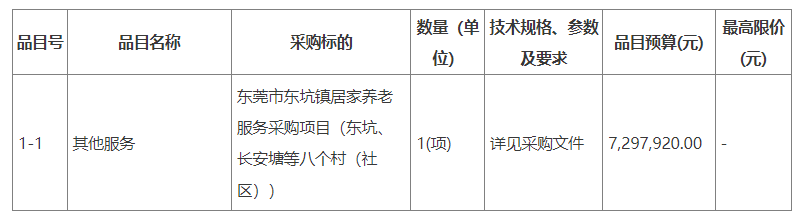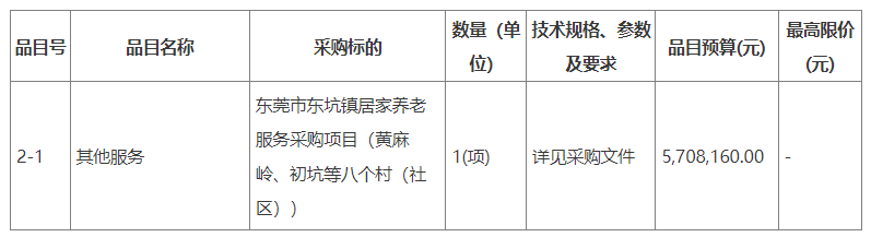 項目名稱:廣東省東莞市東坑鎮(zhèn)居家養(yǎng)老服務采購項目招標公告
