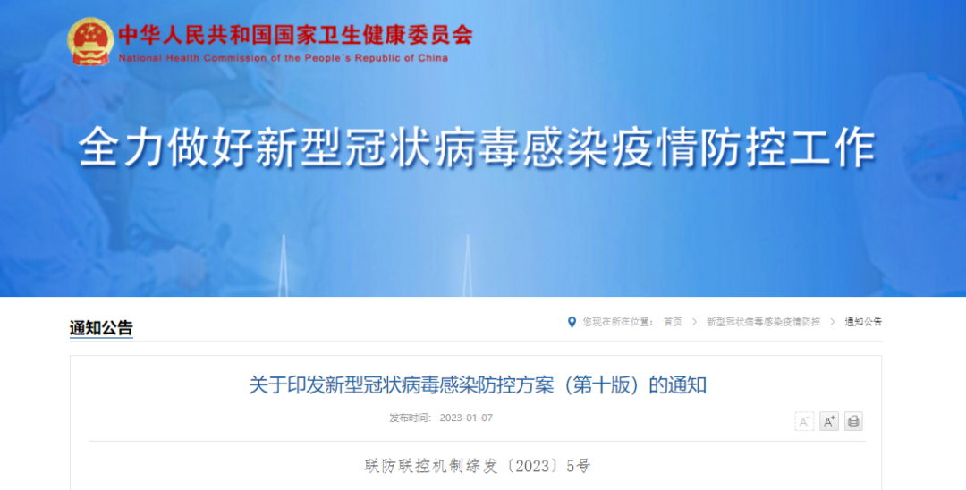 關(guān)于印發(fā)新型冠狀病毒感染防控方案(第十版)的通知
