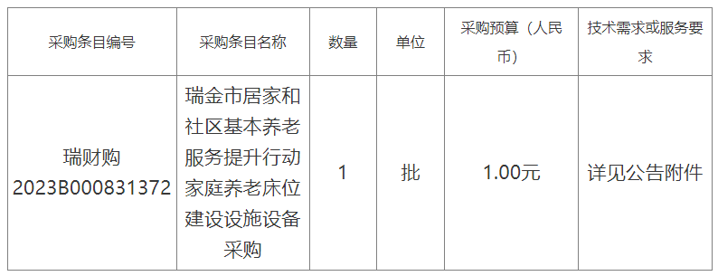 項(xiàng)目名稱:江西省瑞金市民政局瑞金市居家和社區(qū)基本養(yǎng)老服務(wù)提升行動家庭養(yǎng)老床位建設(shè)設(shè)施設(shè)備采購項(xiàng)目(項(xiàng)目編號:GZJX2023-RJ-X001)的詢價采購公告
