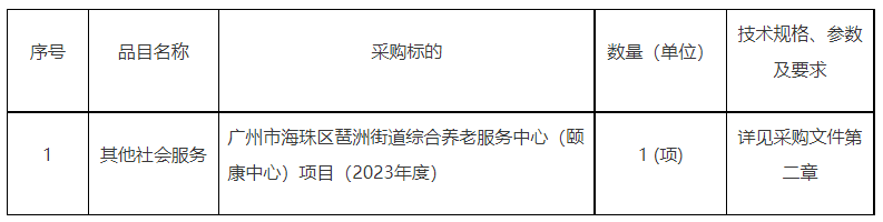 項(xiàng)目名稱:廣東省廣州市海珠區(qū)琶洲街道綜合養(yǎng)老服務(wù)中心(頤康中心)項(xiàng)目(2023年度)競爭性磋商公告