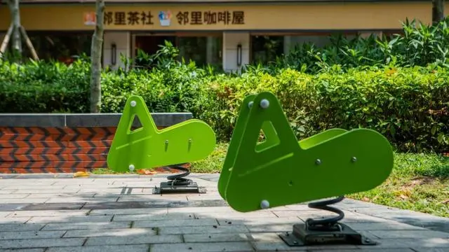 這座公園的設計負責人表示,考慮到陳村社區(qū)周邊常住居民老年人合并未成年人占比超42%,且中年帶娃群體經(jīng)常在附近出現(xiàn),所以公園在規(guī)劃之初,就被賦予了“全齡適配,老少同樂”的目標。這里許多設施都被設計為全齡通用型,甚至還配備了專門鍛煉兒童平衡能力的搖搖馬。
