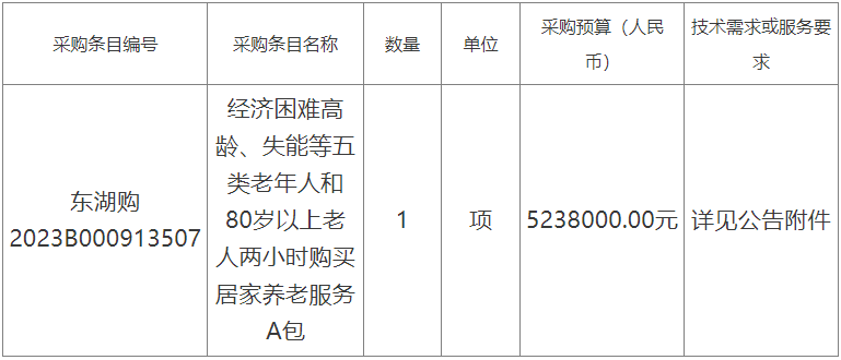 項目名稱:南昌市東湖區(qū)經濟困難高齡、失能等五類老年人和80歲以上老人兩小時購買居家養(yǎng)老服務A包