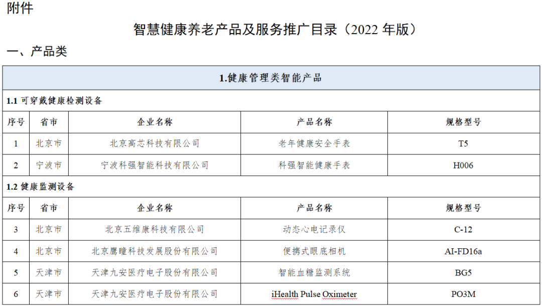 工業(yè)和信息化部 民政部 國(guó)家衛(wèi)生健康委關(guān)于公布《智慧健康養(yǎng)老產(chǎn)品及服務(wù)推廣目錄(2022年版)》的通告