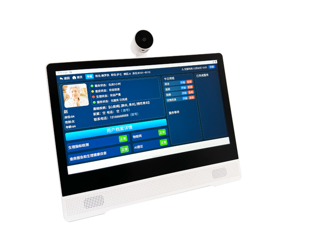 以AI為驅(qū)動(dòng)核心,融合LLM全能語(yǔ)音助手,智能健康監(jiān)管系統(tǒng),服務(wù)呼叫,情感陪護(hù),社區(qū)團(tuán)購(gòu)等功能為一體,打造適老化居家版智能終端。