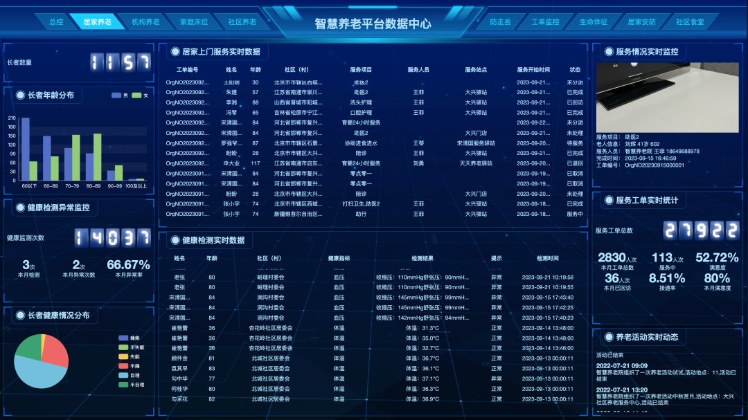 醫(yī)家通居家養(yǎng)老平臺支持老人通過一鍵呼叫、手機APP、熱線電話、微信公眾平臺等多種渠道,預約服務人員上門為其提供生活服務。每條服務工單自動計入系統(tǒng),記錄服務人員、種類、工時及老人評價。與智能設備實現(xiàn)數(shù)據(jù)對接,實現(xiàn)對老人全天候監(jiān)測和實時定位。還可接入轄區(qū)內(nèi)所有養(yǎng)老服務中心數(shù)據(jù)信息,監(jiān)管各機構服務質(zhì)量及服務環(huán)境。數(shù)據(jù)大屏實時概覽,滿足政府和集團性質(zhì)監(jiān)管需求。