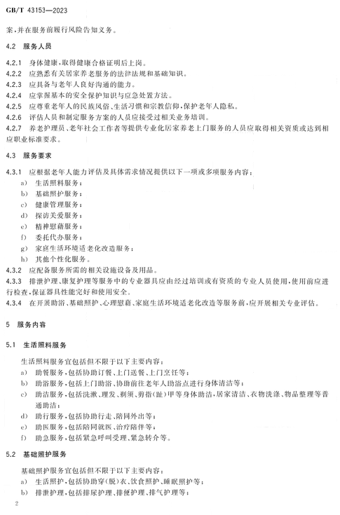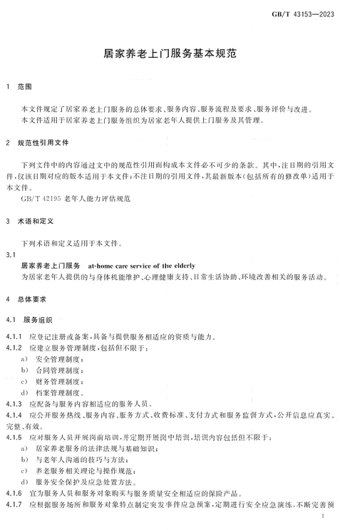《居家養(yǎng)老上門服務(wù)基本規(guī)范》