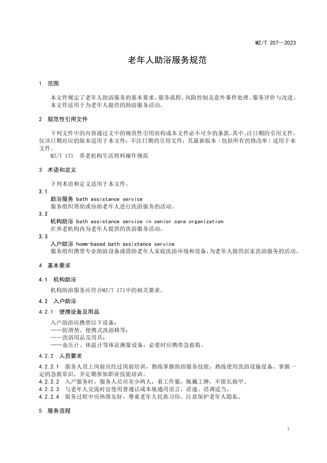 近日,民政部公布《養(yǎng)老機構(gòu)康復(fù)服務(wù)規(guī)范》《老年人居家康復(fù)服務(wù)規(guī)范》《老年人助浴服務(wù)規(guī)范》等3項推薦性行業(yè)標(biāo)準(zhǔn),自2023年12月1日起實施。