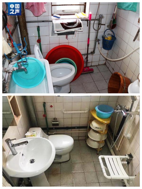 △吳奶奶的家經過改造后,更舒適也更安全,衛(wèi)生間中安裝了座椅及扶手,“洗澡也可以坐著了”。
