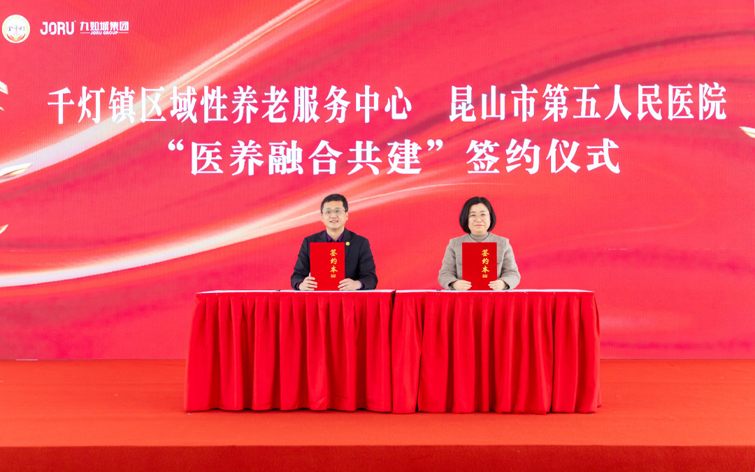 儀式上,千燈鎮(zhèn)黨委委員陸冬生先生和九如城集團(tuán)蘇州城市公司總經(jīng)理王倩賢女士上臺(tái),共同為“家門口老年大學(xué)”合作基地揭牌。千燈鎮(zhèn)黨委委員龔倩女士和九如城集團(tuán)副總裁韓懷軍先生分別代表九如城千燈康養(yǎng)中心與昆山市第五人民醫(yī)院(昆山千燈人民醫(yī)院)雙方簽署合作醫(yī)養(yǎng)融合共建協(xié)議。