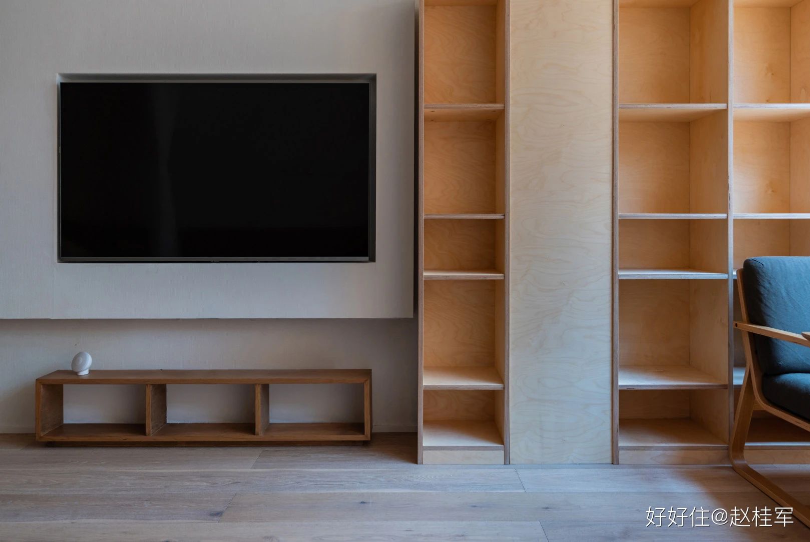 對面的電視墻,也是以簡潔為主,除了開放格,沒有多余繁復(fù)的設(shè)計。