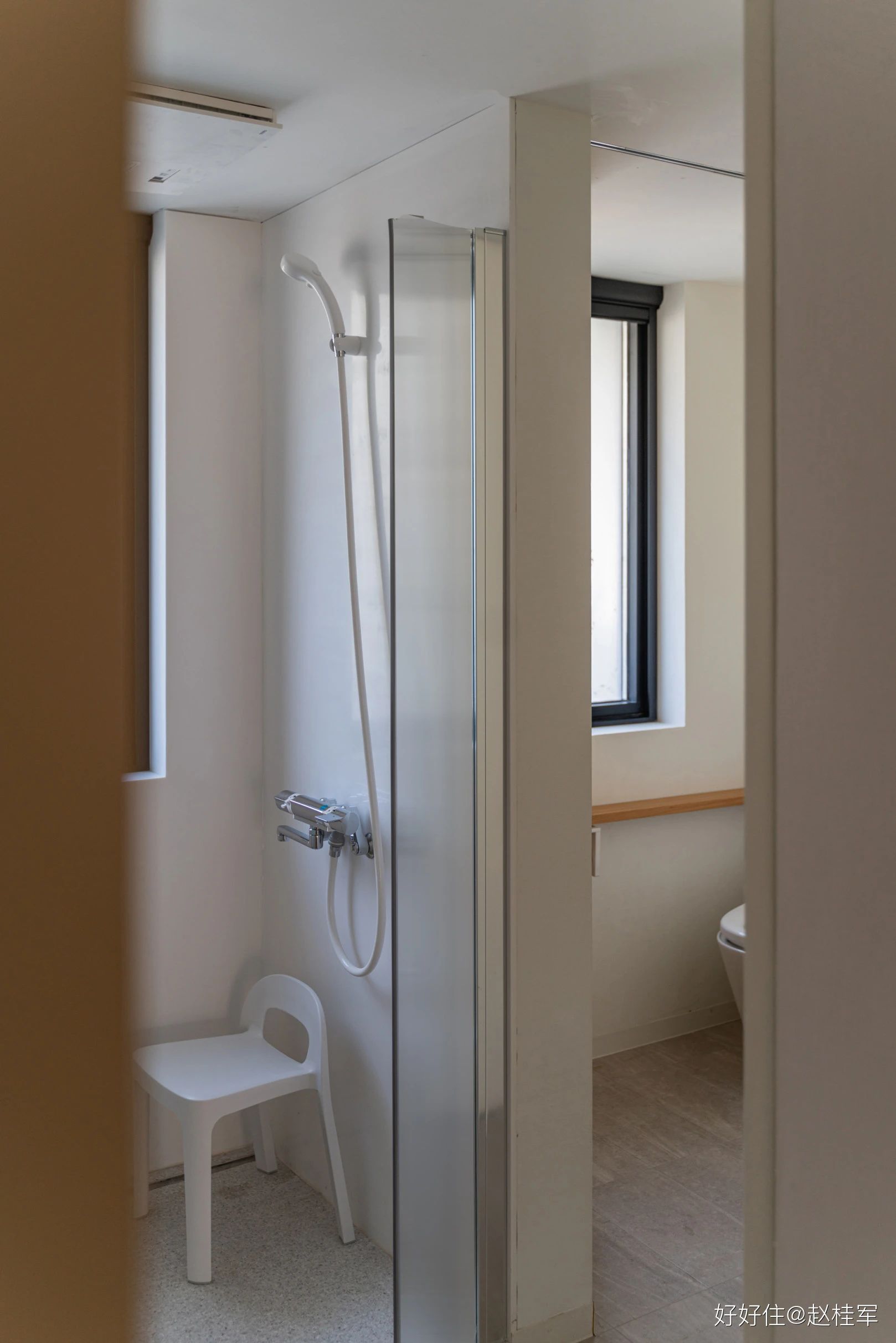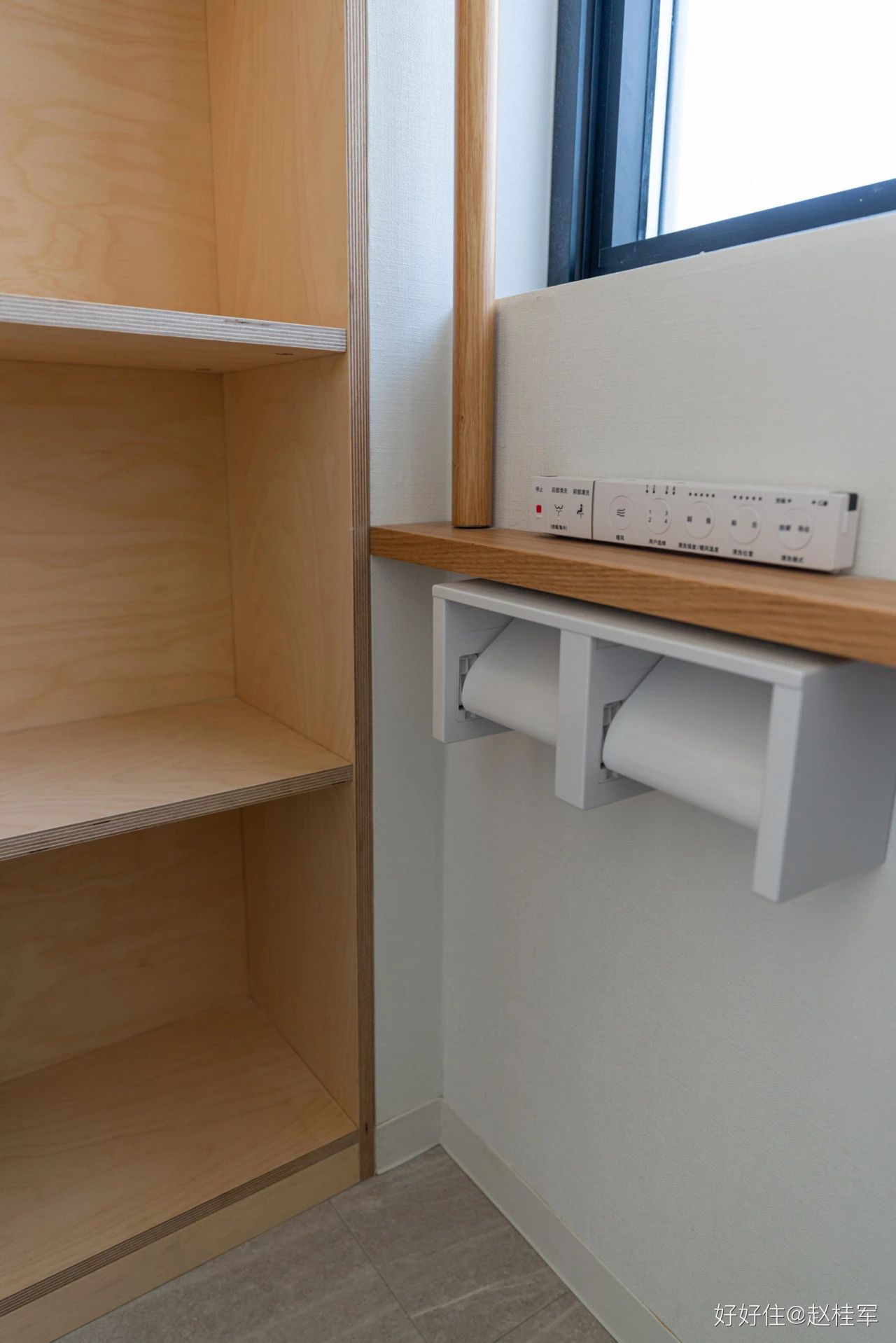 廚衛(wèi)干區(qū)地膠是日本新科的,防滑腳感好,為以后可能使用輪椅做準備。助老設(shè)備 NAKA 除了能放雙卷紙,也有扶手功能,能夠起到支撐作用。