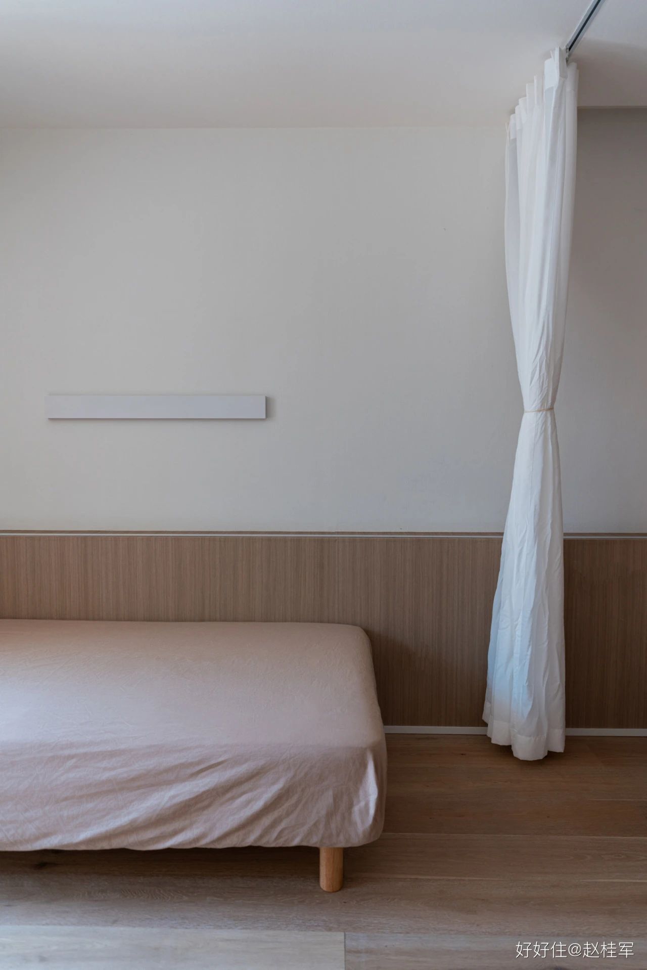 與客廳相連的臥室,經(jīng)過改造,成為了一個敞亮又舒適的區(qū)域。